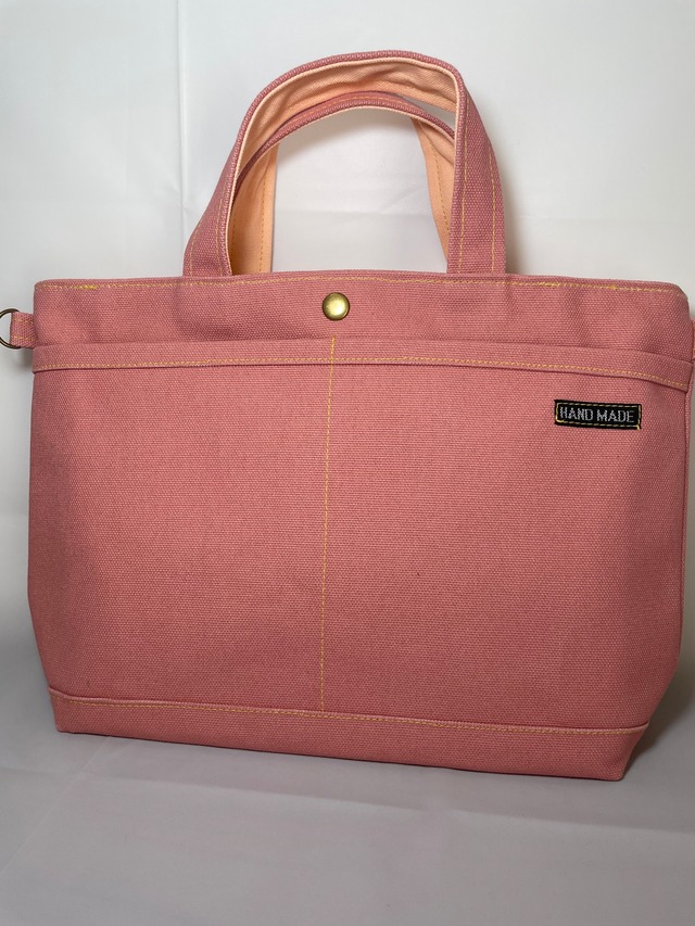 ハンドメイドの作品です 縦22cm 横幅 約33cm マチ幅 約11cm 表布は8号帆布 内布は11号帆布 横にDカンをつけていますので、ショルダー紐を付ける事ができます 別売り500円でおつけすることができます。 素人の作品ですので完璧ではございませんがよろしくお願いいたします
