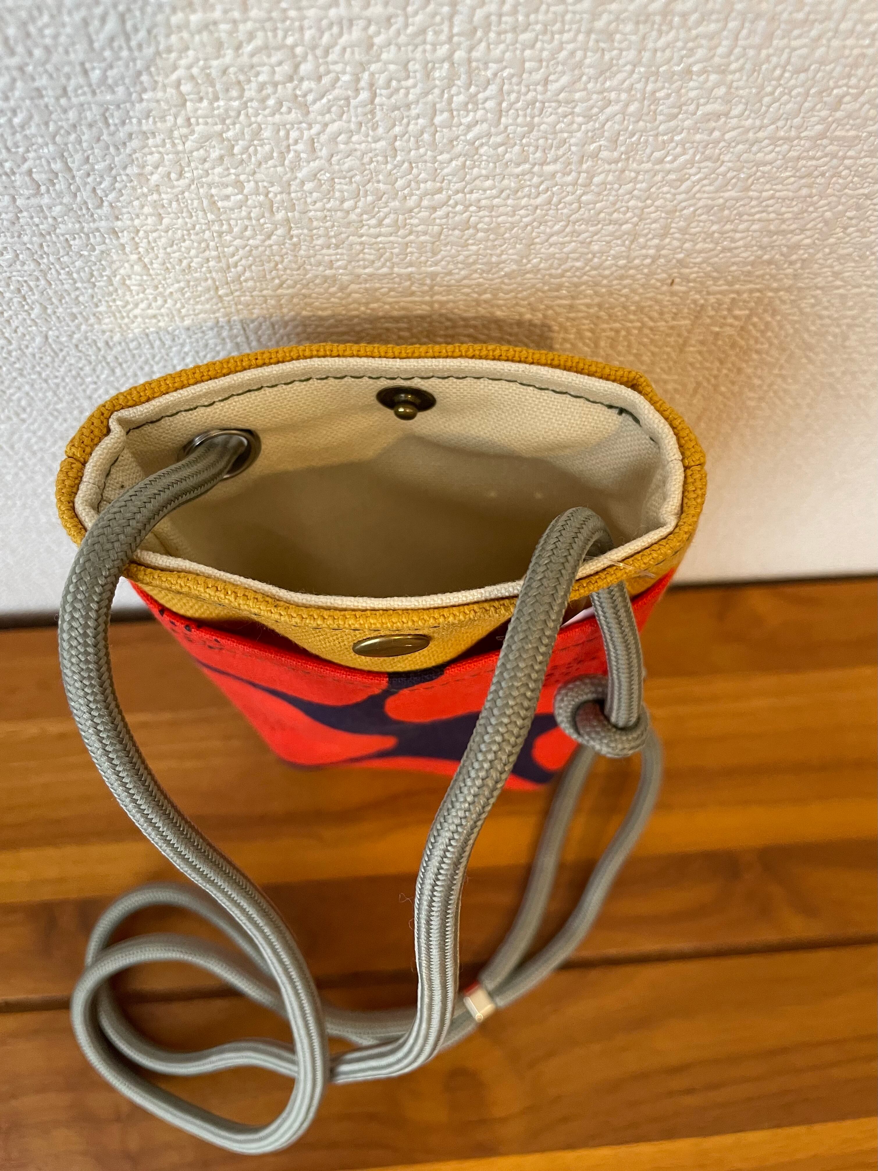 内布は生成り色の11号帆布スマホがスッポリ入りボタンが付いていますので落下防止になります
